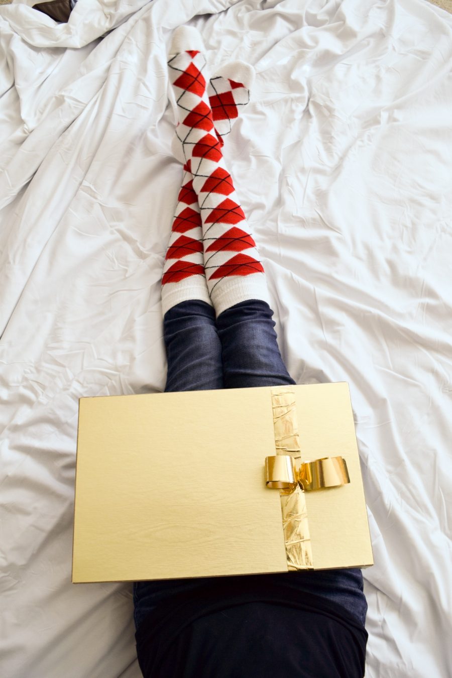 These red argyle socks are perfect for the holiday season! I wore these all through out December, feeling festive with every step I took! I opened presents with my family (shots taken below) wearing these cozy, festive socks and it made for a picture perfect moment. Wear these bare at home or out with your boots – super versatile and super cute! Winter just got started, not too late to grab a pair yourself 😊